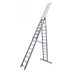 Лестница трехсекционная, 14 ступеней, рабочая высота 10,1 м, максимальная нагрузка 150 кг, вес 34 кг, поставляется в коробке .